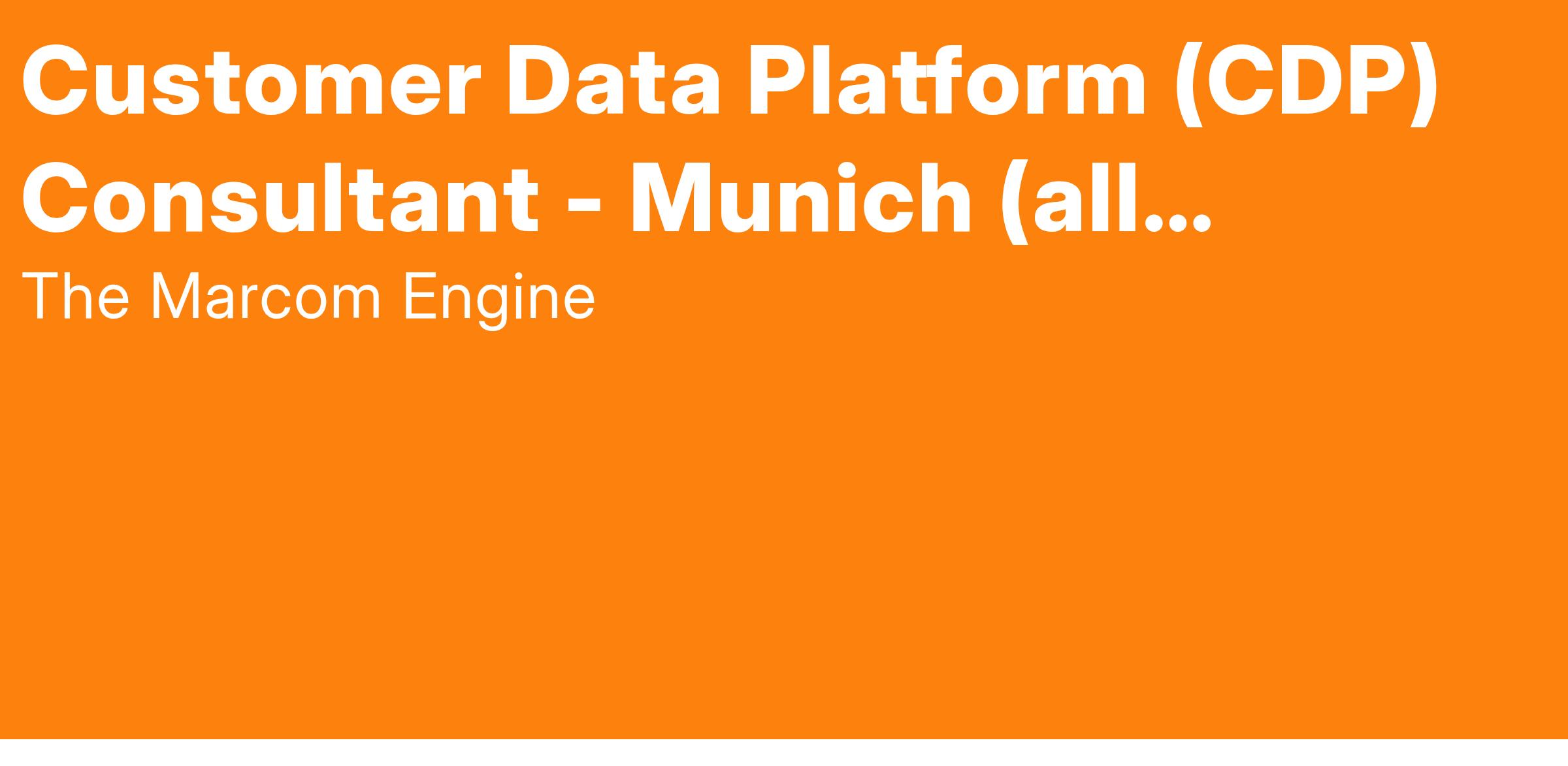 We are looking for a full-time Customer Data Platform (CDP) Consultant (all genders) for The Marcom Engine at our Munich location as soon as possible.