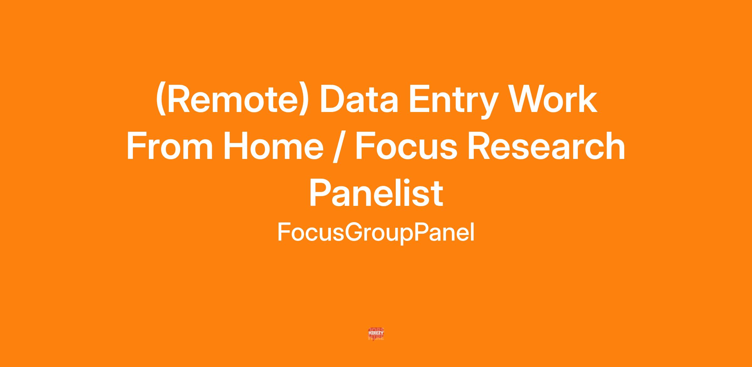 (Remote) Data Entry Work From Home / Focus Research Panelist